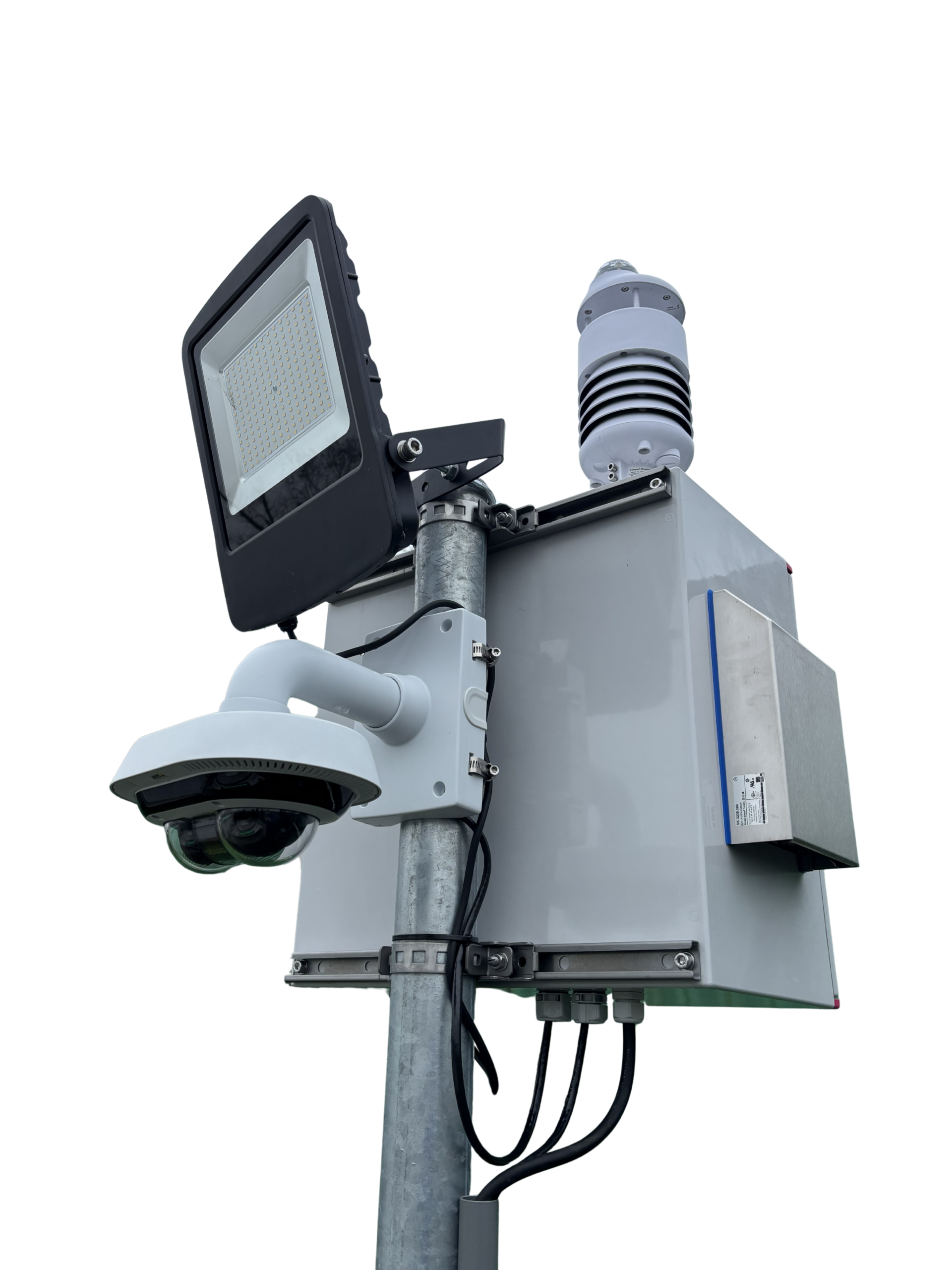 Mehrere Kameras überwachen kontinuierlich die Drohne, die Plattform und die Umgebung der Dockingstation. Dazu gehören Innenkameras im Hangar, Plattformkameras sowie Übersichtskameras. Sie liefern Livebilder für die Fernüberwachung und unterstützen Betreiber bei Start-, Lande- und Wartungsprozessen. Die Close-Up-Kamera bietet eine 4 MP Auflösung (2688 × 1512), während Übersichtskameras eine Stereo-Konfiguration mit 2 × 2 MP (1920 × 1080) und 2,5× Zoom verwenden.