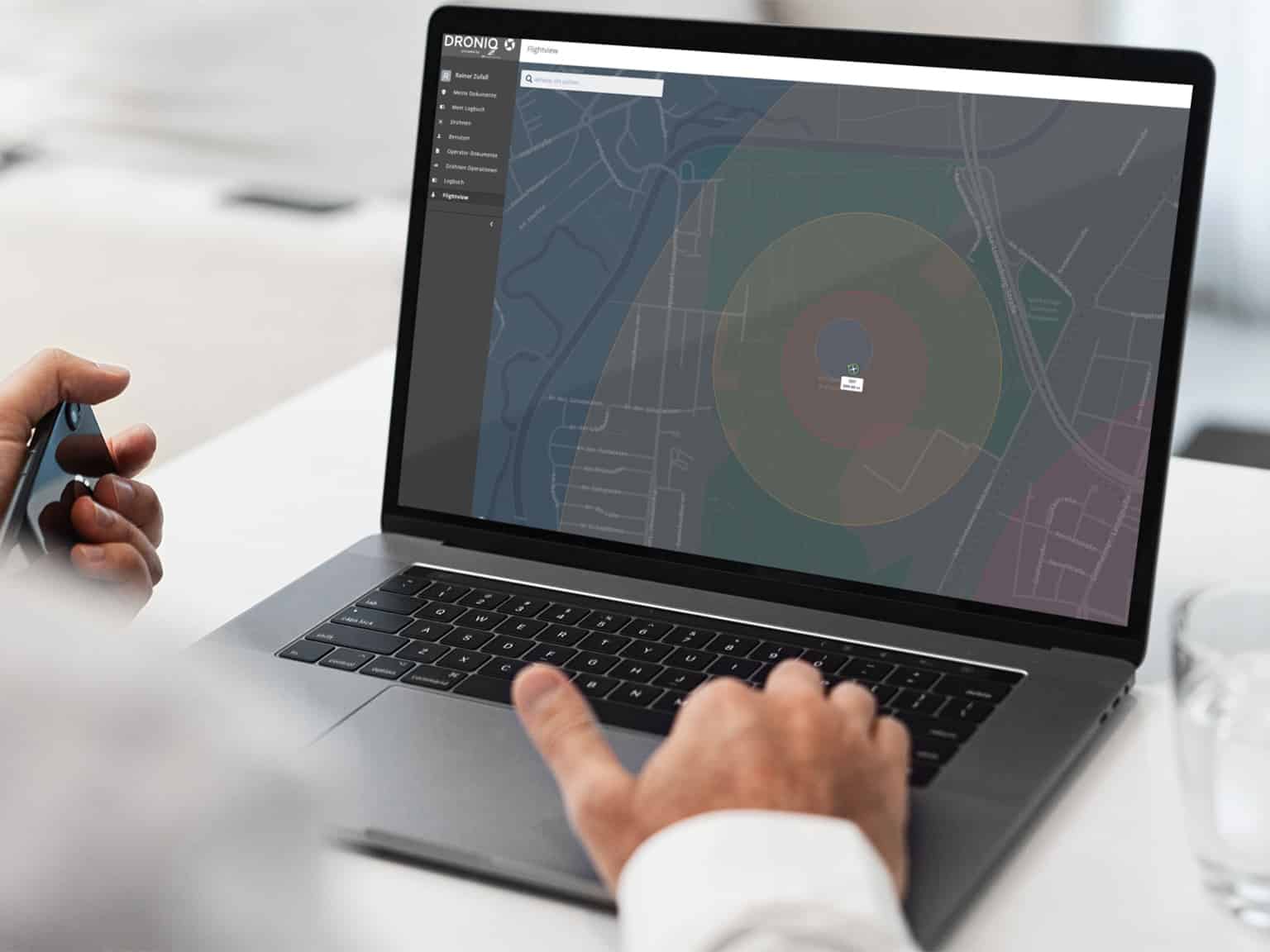 Kern des Produktangebots von Droniq ist ein Verkehrsmanagementsystem für Drohnen, das UAS Traffic Management System (UTM), das neben einem kombinierten Luftlagebild aus bemannten und unbemannten Luftfahrzeugen weitere Funktionen zum sicheren und effizienten Drohnenbetrieb außerhalb der Sichtweite (BVLOS) bietet.